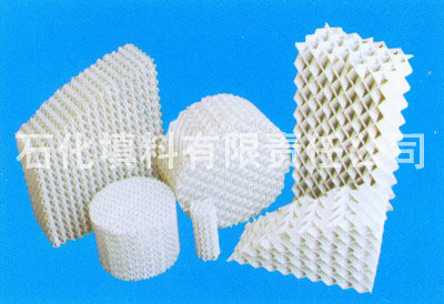 陶瓷波紋填料具有比表面積大、通量大、阻力小、效率高、耐腐蝕、耐高溫(可達(dá)1000°C以上)、操作彈性大、放大效應(yīng)不明顯等優(yōu)點。特別適用于對壓降和理論板數(shù)有嚴(yán)格要求的高溫腐蝕性物料的精餾、吸收等分離過程。